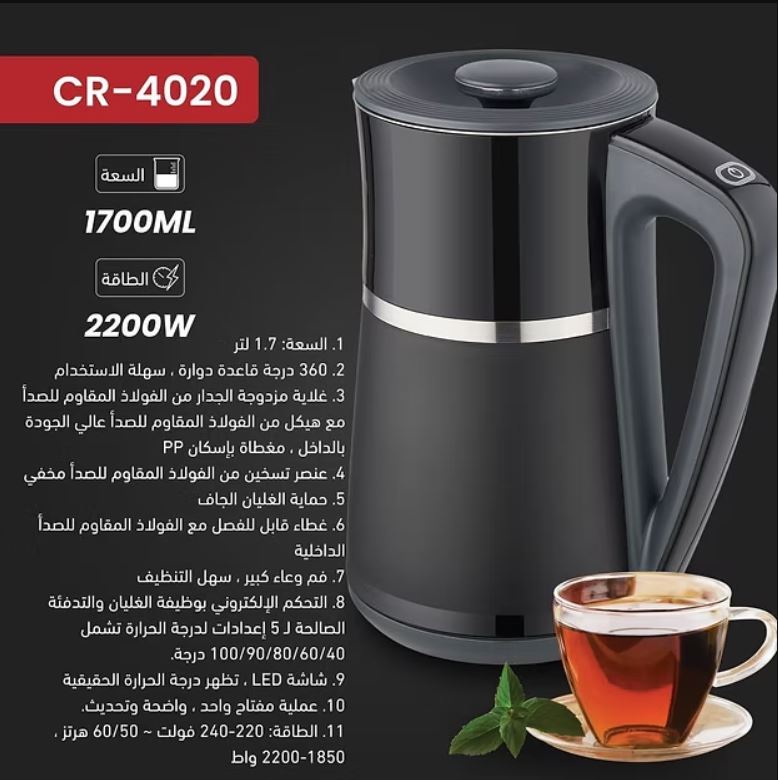 Crest Black Stainless Kettle إبريق تسخين ستانلس ديجيتال أسود🌟