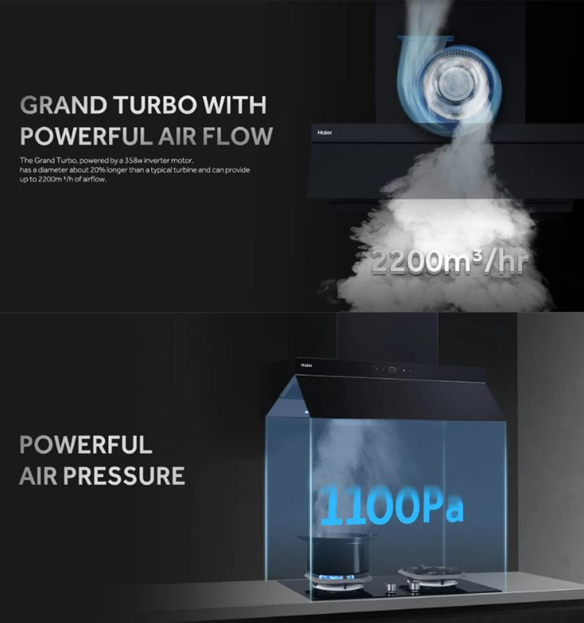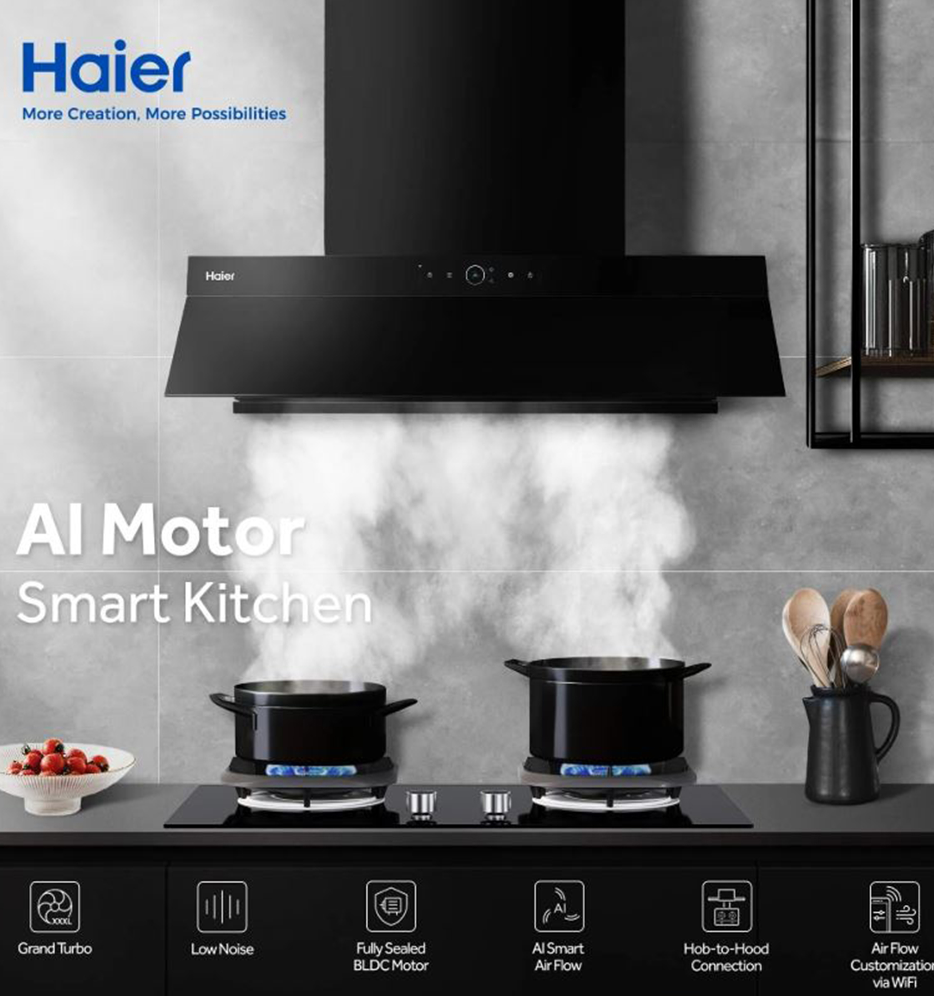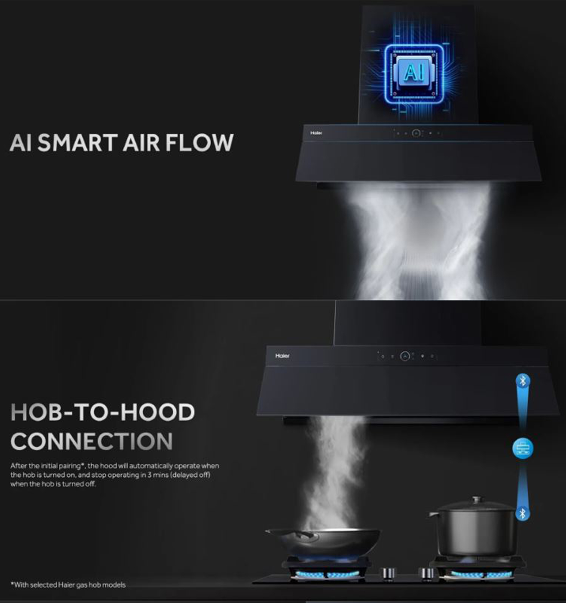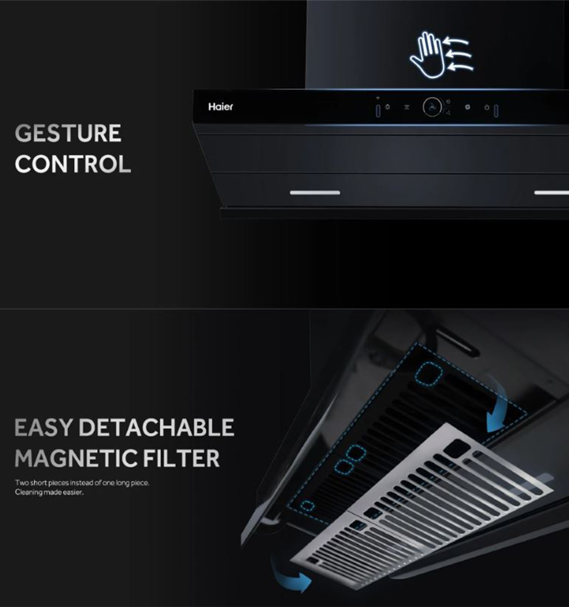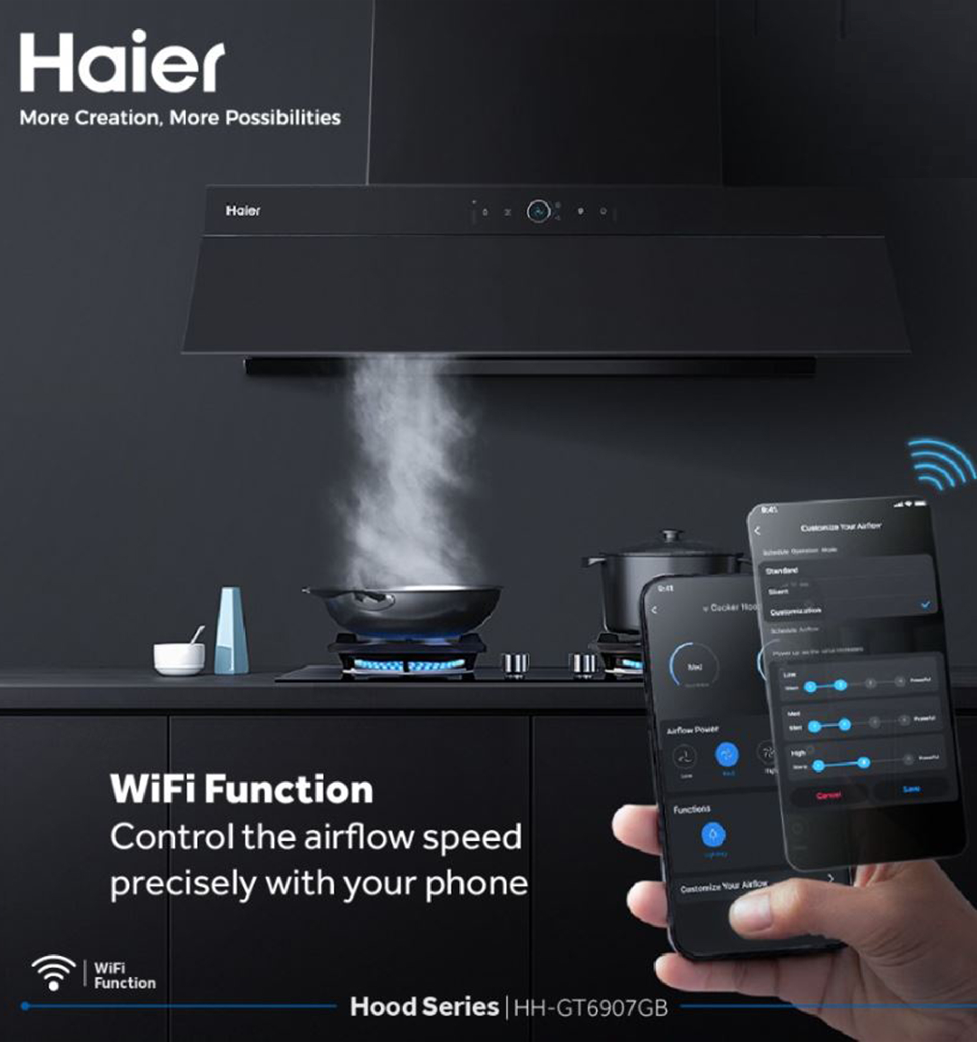 Haier Smart Cooking Hood 90CM شفاط هاير زجاج أسود